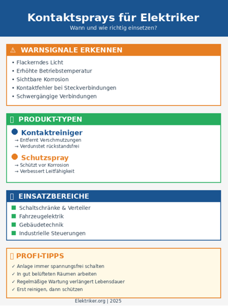 Die Arbeit mit elektrischen Anlagen und Komponenten gehört zum Alltag eines jeden Elektrikers. Dabei spielt die Qualität der elektrischen Verbindungen eine entscheidende Rolle für Sicherheit und Funktionalität. Kontaktsprays sind dabei unverzichtbare Helfer, die oft unterschätzt werden. Doch wann ist ihr Einsatz wirklich notwendig und welche Vorteile bringen sie?